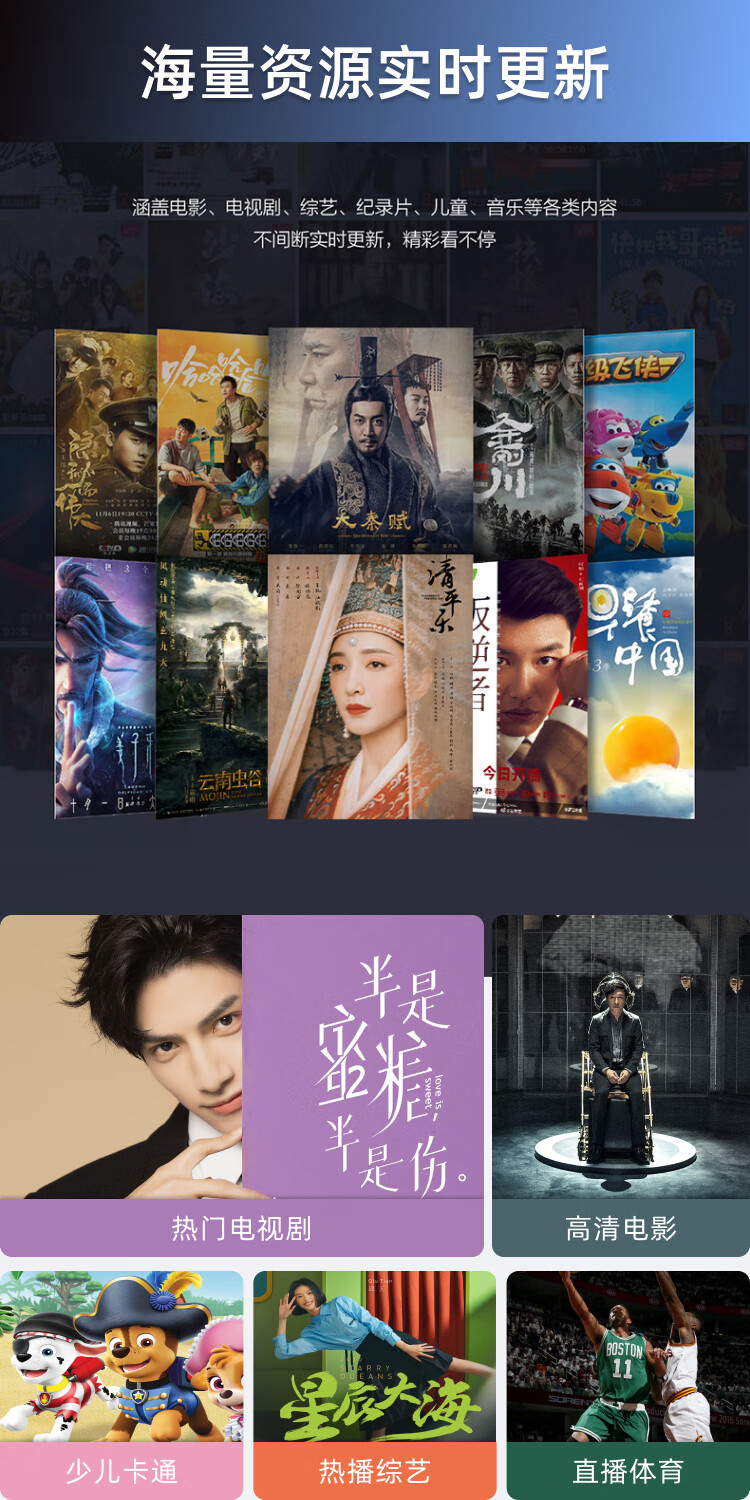 商品名称:鲸威【0月租免费看电视】网络机顶盒 海思芯片wifi直连电视盒子无线高清投屏播放器电信移动联通全网通 增强版【8G高清版+红外遥控】