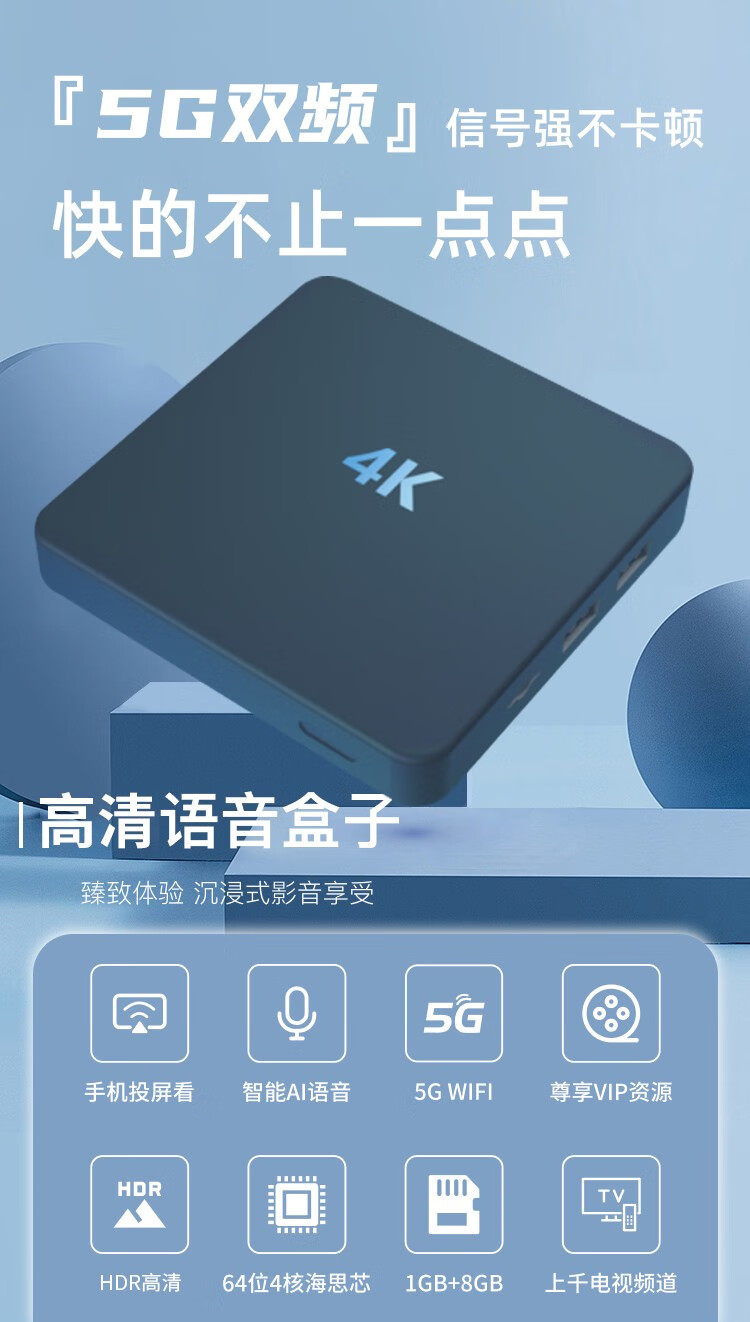 商品名称:鲸威【0月租免费看电视】网络机顶盒 海思芯片wifi直连电视盒子无线高清投屏播放器电信移动联通全网通 增强版【8G高清版+红外遥控】
